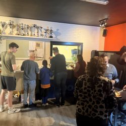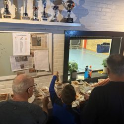 Door winterse omstandigheden was de levering van de bekers helaas vertraagd, waardoor alleen de wisselbekers konden worden uitgereikt. Dat mocht de pret niet drukken: na afloop werd er samen Chinees gegeten en bleef het nog lang gezellig.