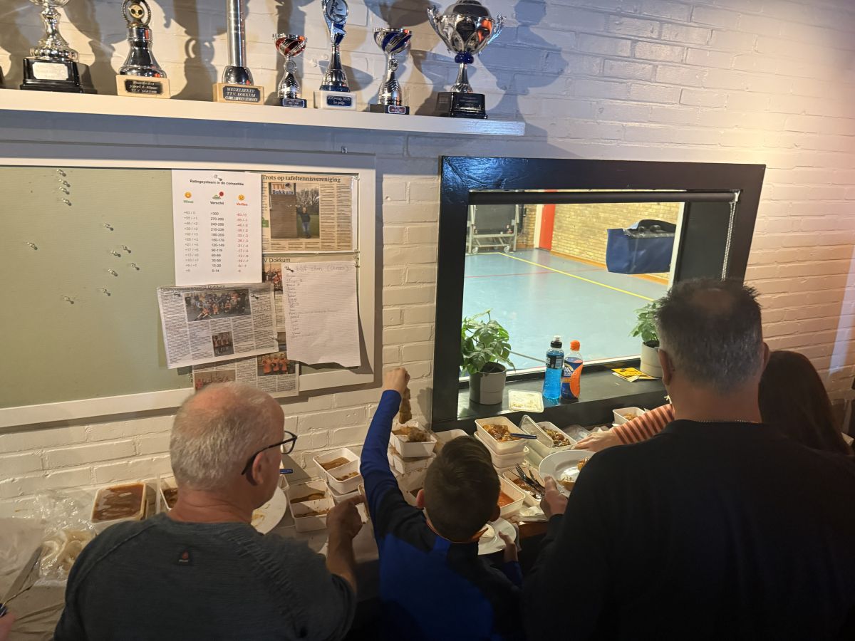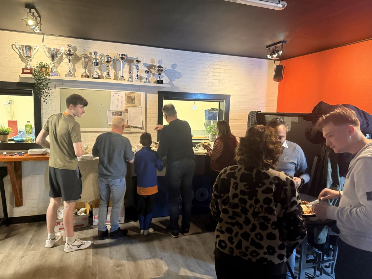 Door winterse omstandigheden was de levering van de bekers helaas vertraagd, waardoor alleen de wisselbekers konden worden uitgereikt. Dat mocht de pret niet drukken: na afloop werd er samen Chinees gegeten en bleef het nog lang gezellig.